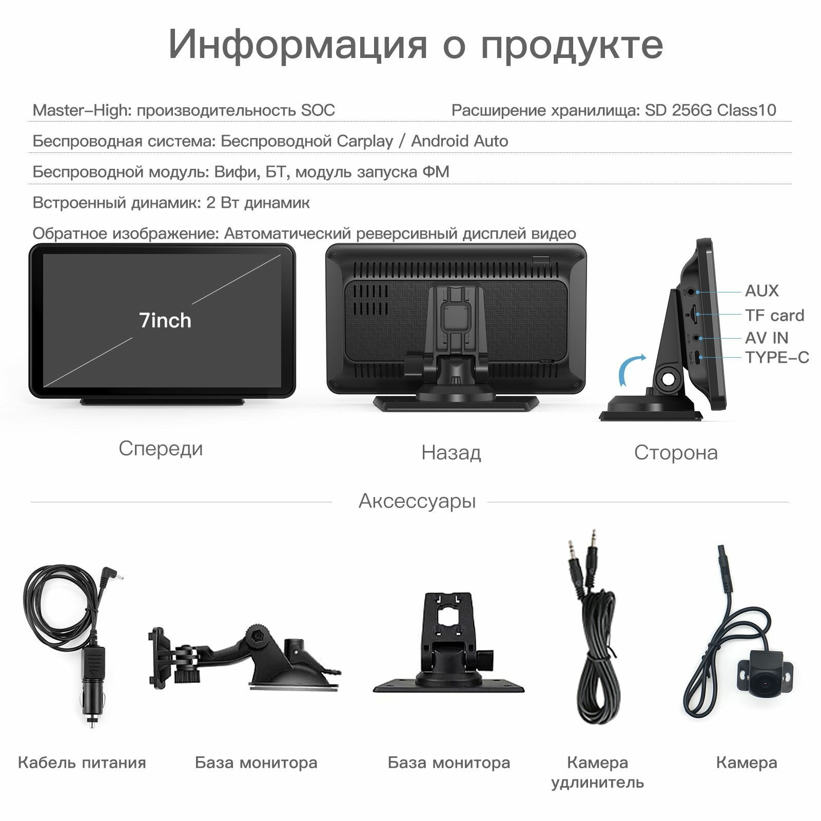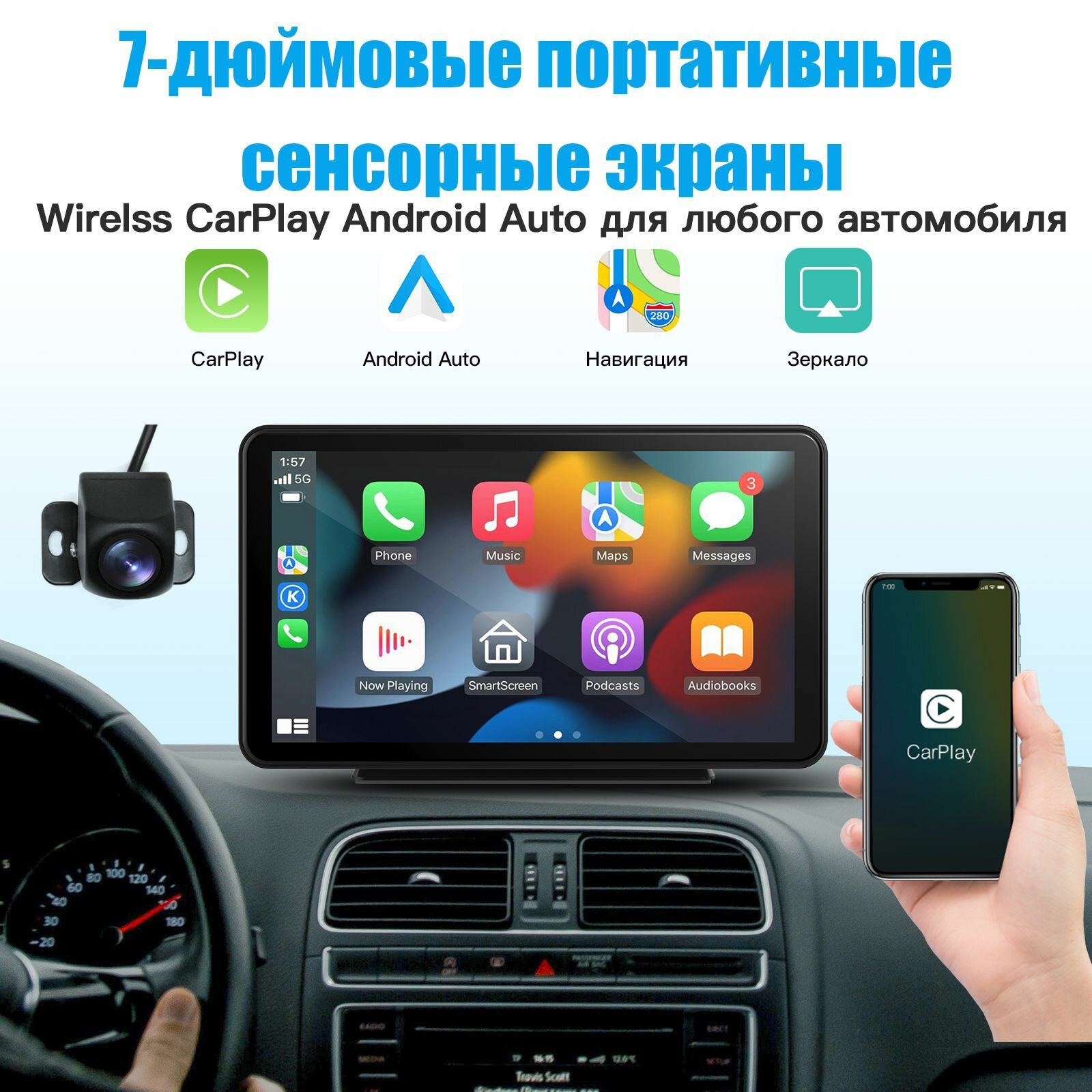 Купить 7-дюймовый экран Carplay с камерой заднего вида с доставкой по всей России. 7-дюймовый экран Carplay с камерой заднего вида: сравнение цен, характеристики, фото, актуальное наличие и цены.