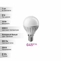 Онлайт OLL-G45-10-230-6.5K-E14 61 967 Светодиодные лампы «Онлайт» – светодиодные энергосберегающие лампы общего и декоративного освещения. Основные преимущества Высокоэффективные планарные светодиоды Epistar Алюминий и композитные материалы в составе радиаторов обеспечивают эффективный теплоотвод Высокоэффективный драйвер обеспечивает стабильную работу в широком диапазоне входных напряжений Сглаженные пульсации светового потока Диапазон рабочих температур от -40 до +40 °С Срок службы 30 000 часов Гарантия 1 год