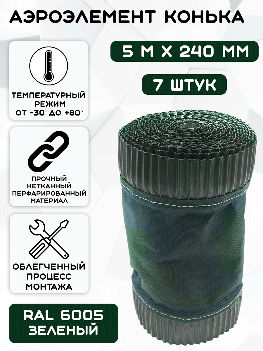 7 штук аэроэлемент конька и хребта крыши Б (0.24 х 5 м) лента коньковая вентиляционная (RAL 6005) зеленый: сравнение цен, характеристики, фото, актуальное наличие и цены.