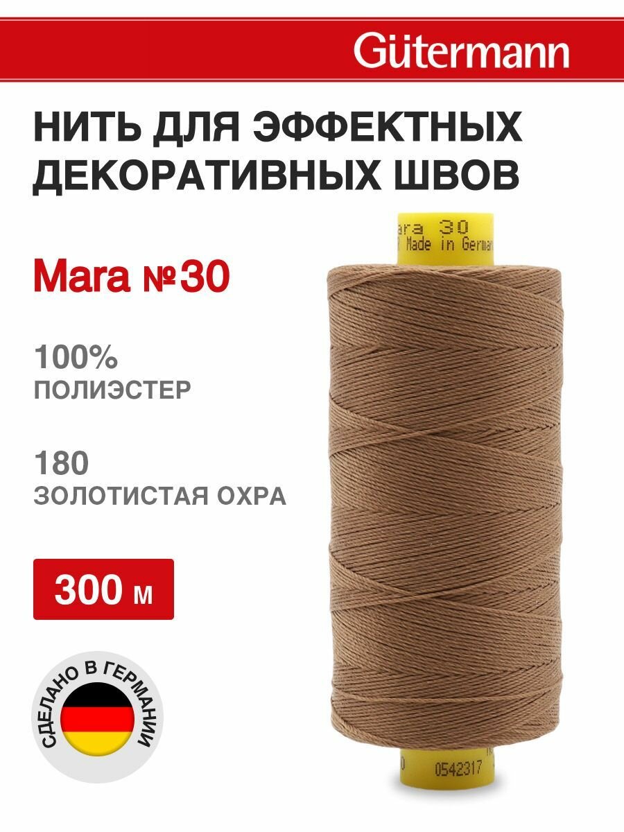 Купить Нитки швейные Mara 30, 10шт*300м, для отстрочки, Gutermann (180 золотистая охра) с доставкой по всей России.
