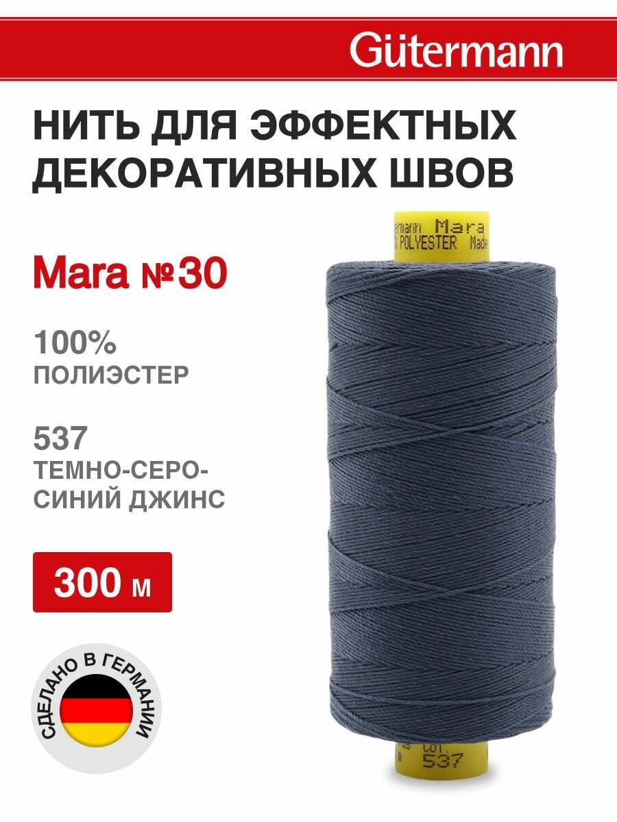 Купить Нитки швейные Mara 30, 10шт*300м, для отстрочки, Gutermann (537 тёмный серо-синий джинс) с доставкой по всей России.