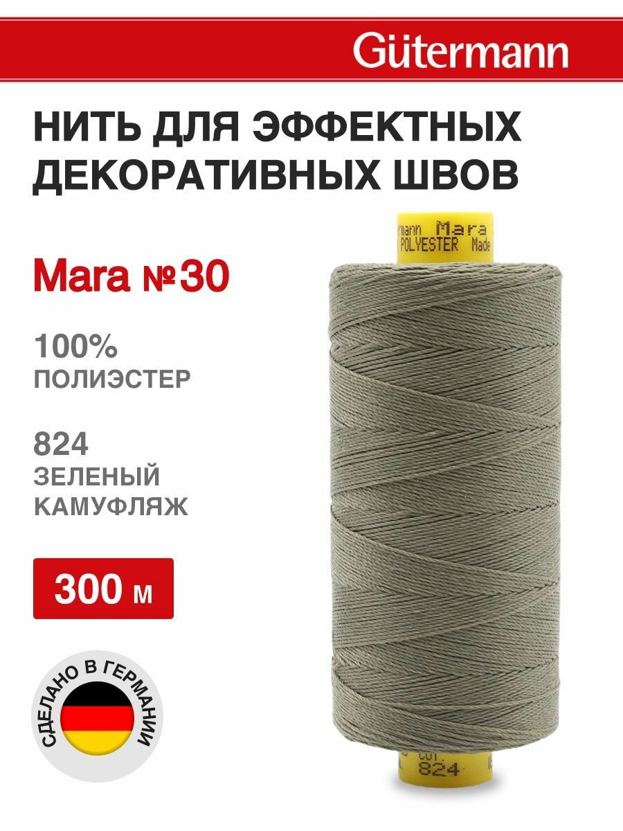 Купить Нитки швейные Mara 30, 10шт*300м, для отстрочки, Gutermann (824 зеленый камуфляж) с доставкой по всей России.