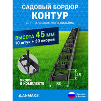 7245-К-10-30 Экобордюр контур Б-100.05.08 пластиковый черный L-1000 мм, H-45 мм, (упаковка 10 шт. плюс 30 якорей): сравнение цен, характеристики, фото, актуальное наличие и цены.