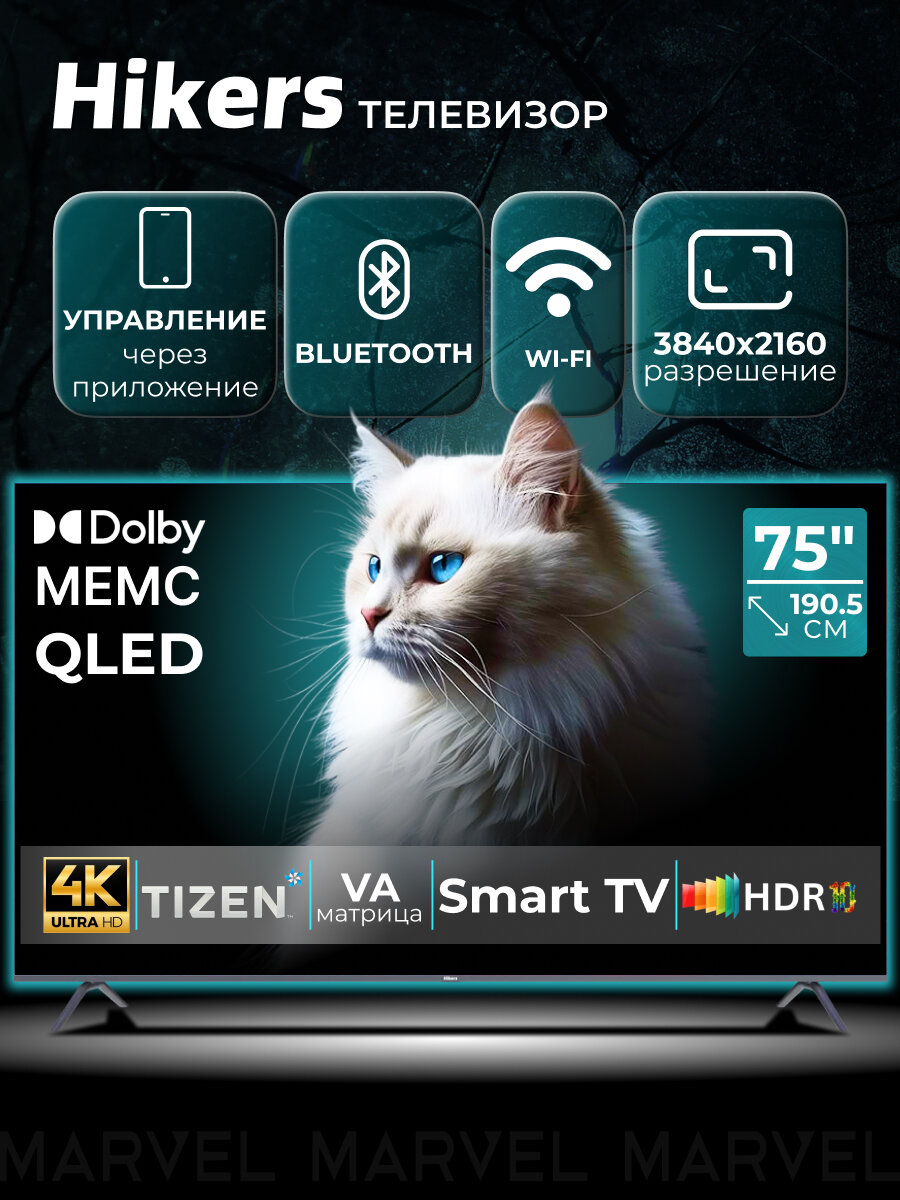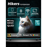Телевизор 75″ со Смарт ТВ Hikers 75HTQ01 4K UHD, Smart TV, Wi Fi, Bluetooth, TIZEN OS, MEMC, Dolby Audio, HDR, QLED: сравнение цен, характеристики, фото, актуальное наличие и цены.