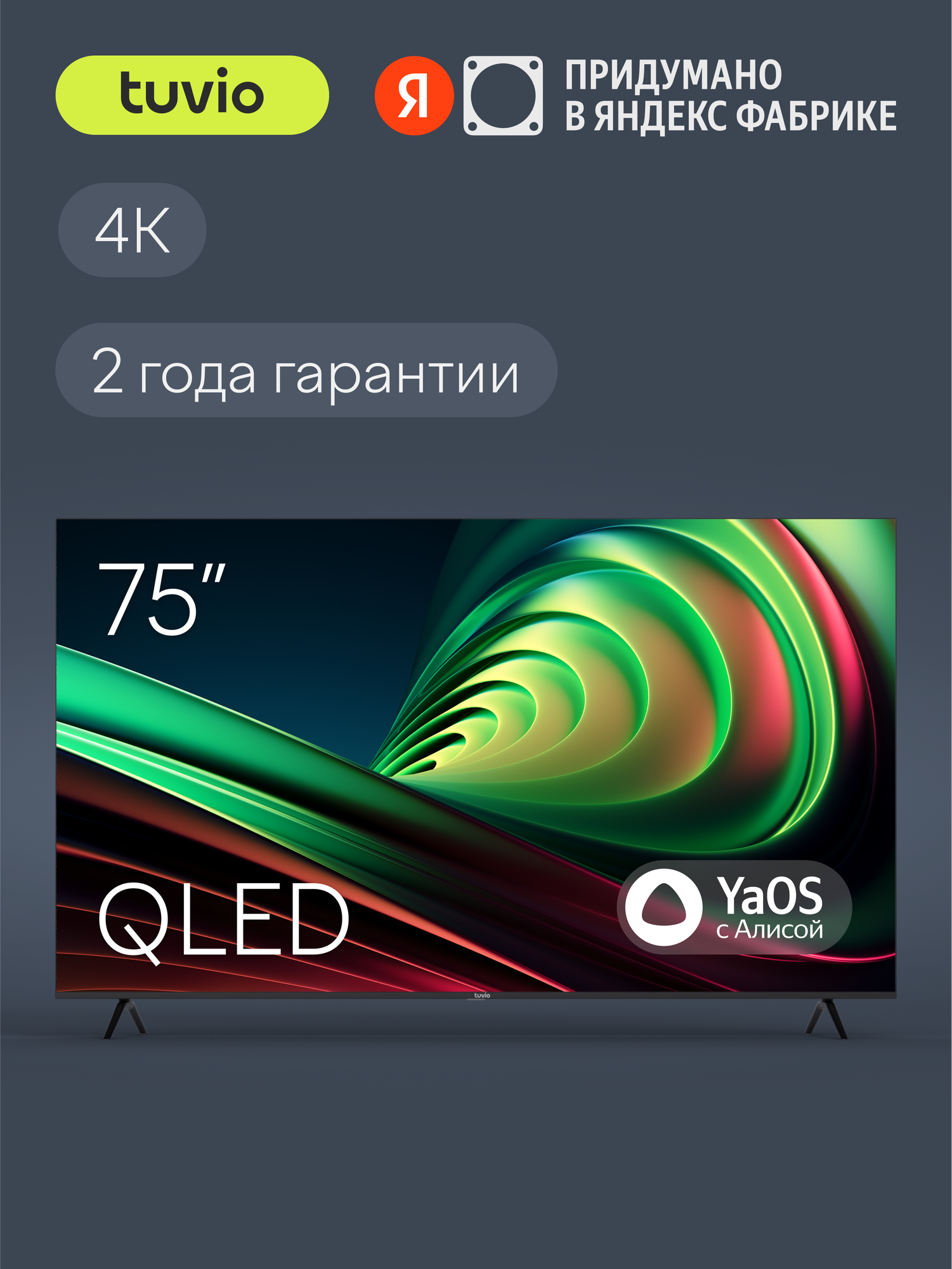Купить 75” Телевизор Tuvio 4K ULTRA HD QLED Frameless на платформе YaOS, TQ75UFGHH11, темно-серый с доставкой по всей России.