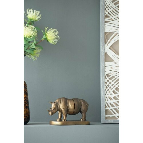 Носорог является символом удачи и счастья, олицетворением ума и учености. Завершите внешний вид библиотечных полок или консольного столика с помощью этих держателей для книг в виде носорога. Изделие с четкими линиями и золотистым оттенком разнообразит пространство вашего книжного шкафа. Вес изделия: 1,6кг. Размер: 28х12х15см. Материал: Полирезина. Производитель: Китай.