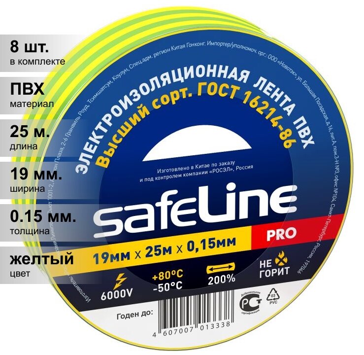 Купить (8 шт.) Изолента ПВХ желто-зеленая 19мм 25м Safeline с доставкой по всей России. (8 шт.) Изолента ПВХ желто-зеленая 19мм 25м Safeline: сравнение цен, характеристики, фото, актуальное наличие и цены.
