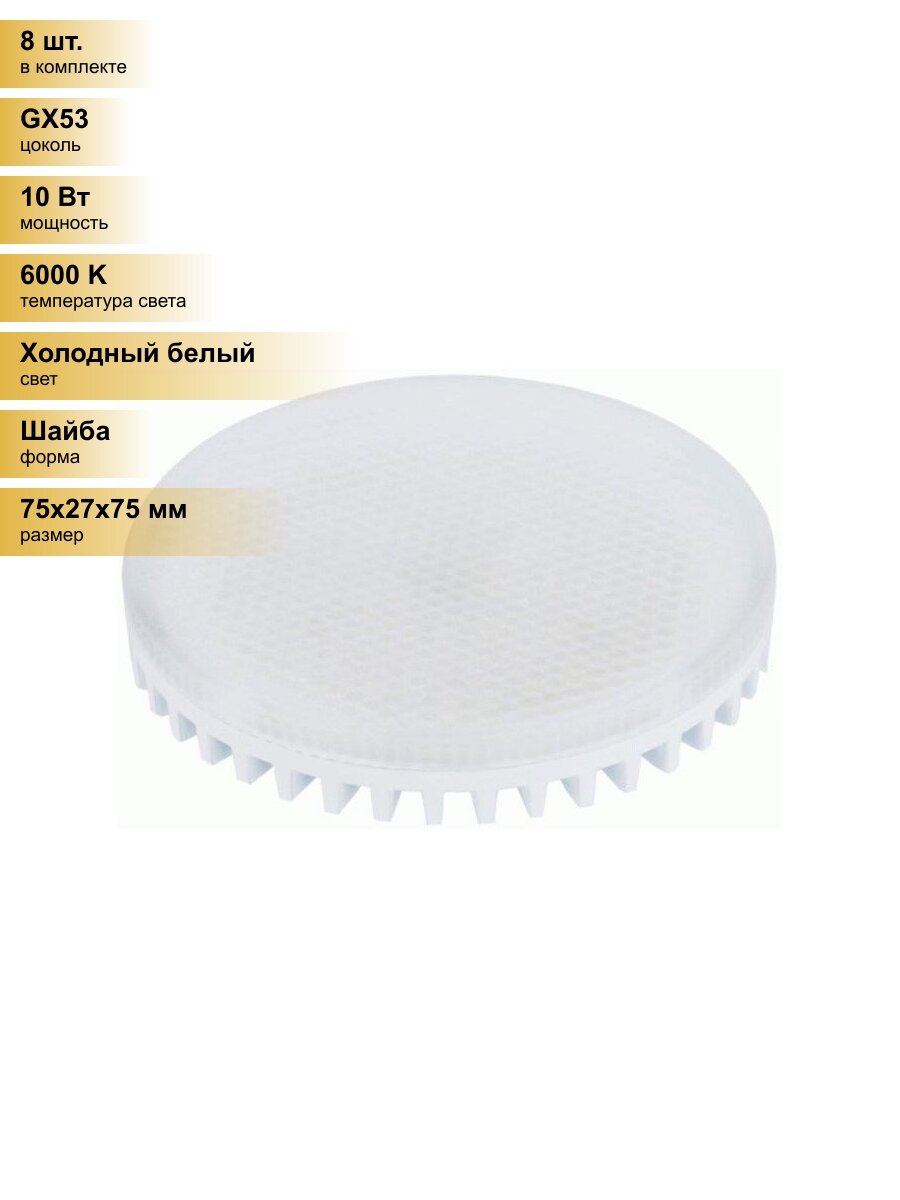 (8 шт.) Светодиодная лампочка LEEK GX53 св/д 10W(850lm) 6000K 6K 75×27 матов. LE010508-0027 Холодный белый. Цоколь GX53: сравнение цен, характеристики, фото, актуальное наличие и цены.