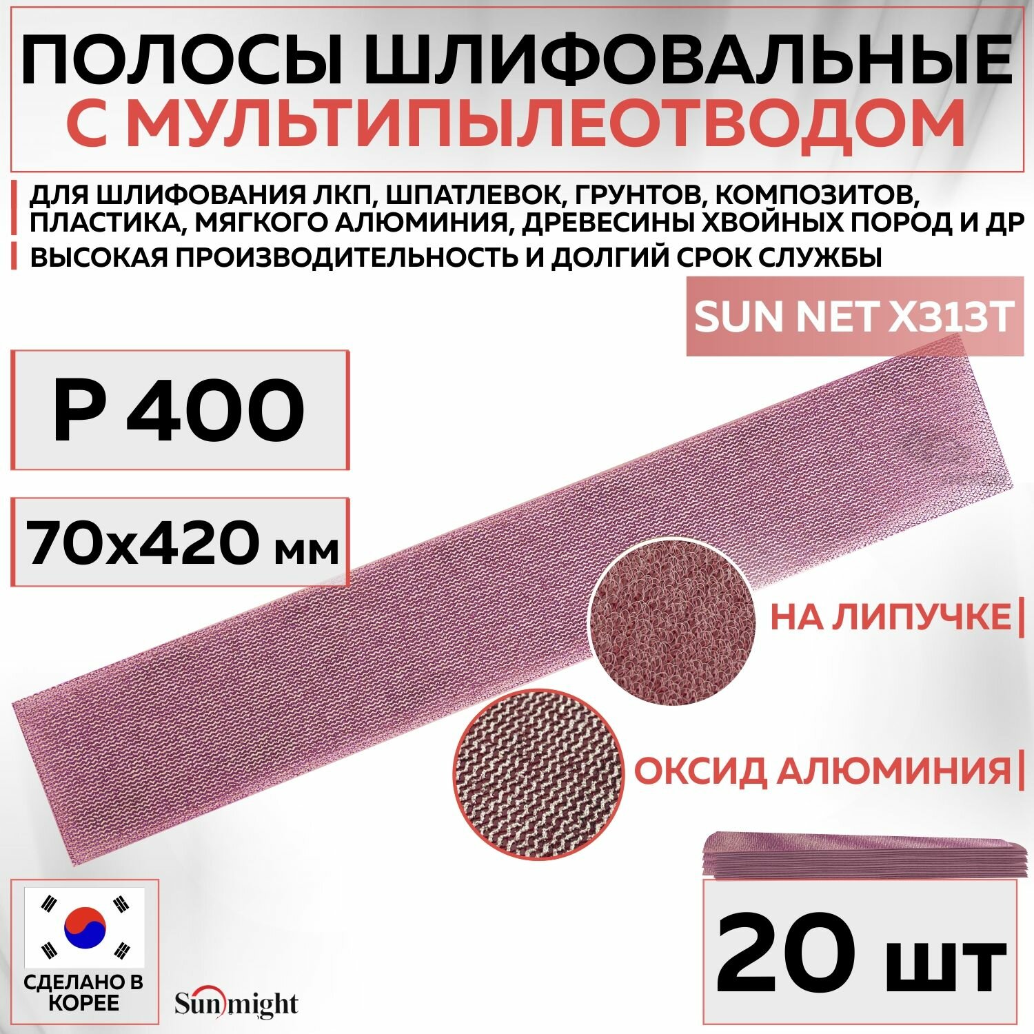 Купить 82316 Шлифовальные абразивные полосы Sunmight SUN NET X313T, сетка с мультипылеотводом, 70 x 420 мм, P400, 20 шт полос/упак. с доставкой по всей России.