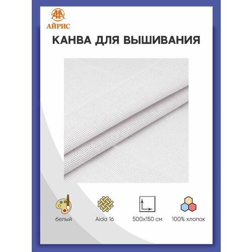 Сетчатая канва для вышивания счетным крестом соответствует популярной канве Aida 16 плотностью 60 клеток на 10 см. Aida 16 каунта – канва, которую предпочитают мастерицы с опытом. Материал позволяет выкладывать небольшие стежки, прекрасно подходит для создания картин-гобеленов, для вышивания по схемам с подробной детализацией и большим количеством цветов. Чтобы защитить материал от осыпания, обработайте его края вручную или на швейной машине. Рекомендуется вышивать крестиком или гобеленовым швом в 1–2 нити. Размер: 500x150 см. Цвет: белый. Состав: 100% хлопок.