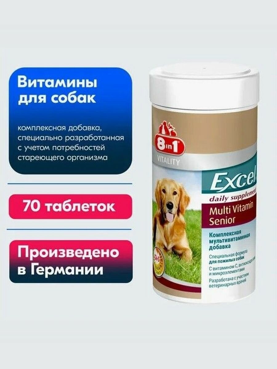 Купить 8in1 Excel Multi Vit-Senior / Кормовая добавка для пожилых собак 70 таблеток с доставкой по всей России. 8in1 Excel Multi Vit-Senior / Кормовая добавка для пожилых собак 70 таблеток: сравнение цен, характеристики, фото, актуальное наличие и цены.