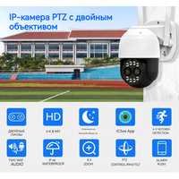 8MP 4K WIFI камера, двойной объектив, Карта памяти 64 Гб в комплекте PTZ, 8x цифровой зум, AI отслеживание людей, наружное аудио, CCTV камера безопасности, iCSee