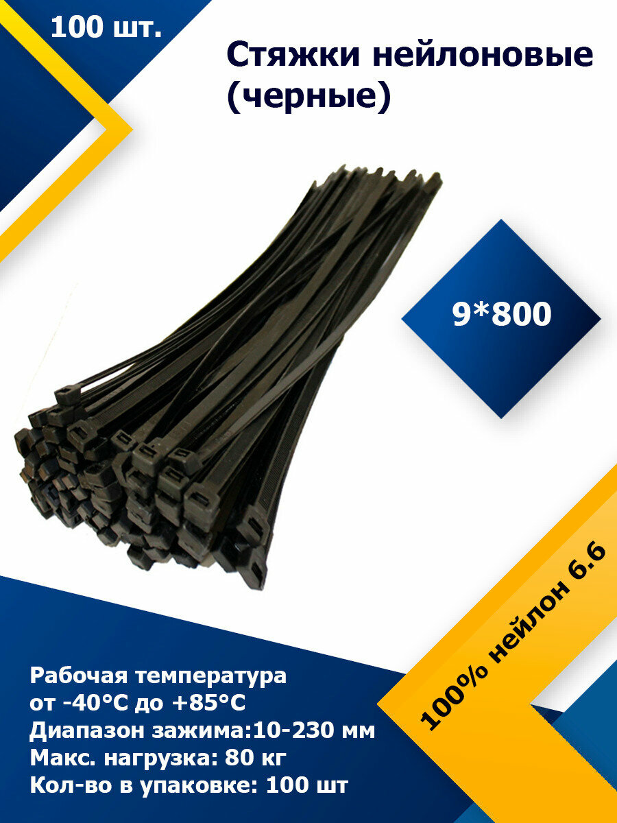 9*800 Черный (100 шт.) Стяжка нейлоновая, хомут быстрого крепления , набор хомутов , кабельный, пластиковый.: сравнение цен, характеристики, фото, актуальное наличие и цены.