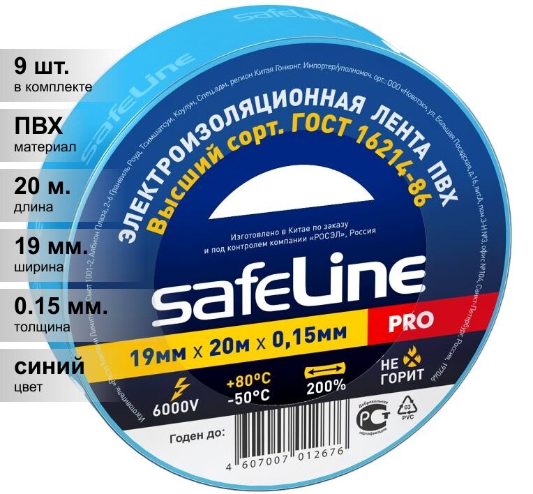 Купить (9 шт.) Изолента ПВХ синяя 19мм 20м Safeline с доставкой по всей России. (9 шт.) Изолента ПВХ синяя 19мм 20м Safeline: сравнение цен, характеристики, фото, актуальное наличие и цены.