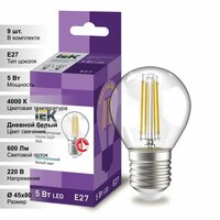 (9 шт.) Светодиодная лампочка IEK G45 5Вт 230В 4000К E27 филамент.