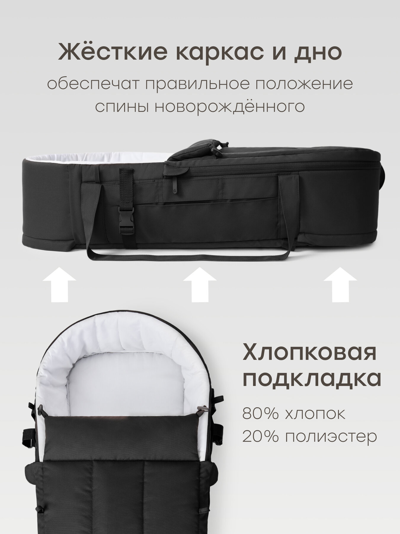 Купить 92023, Люлька-переноска для новорожденных Happy Baby CARRY, для коляски, с креплением фастекс, черная с доставкой по всей России.