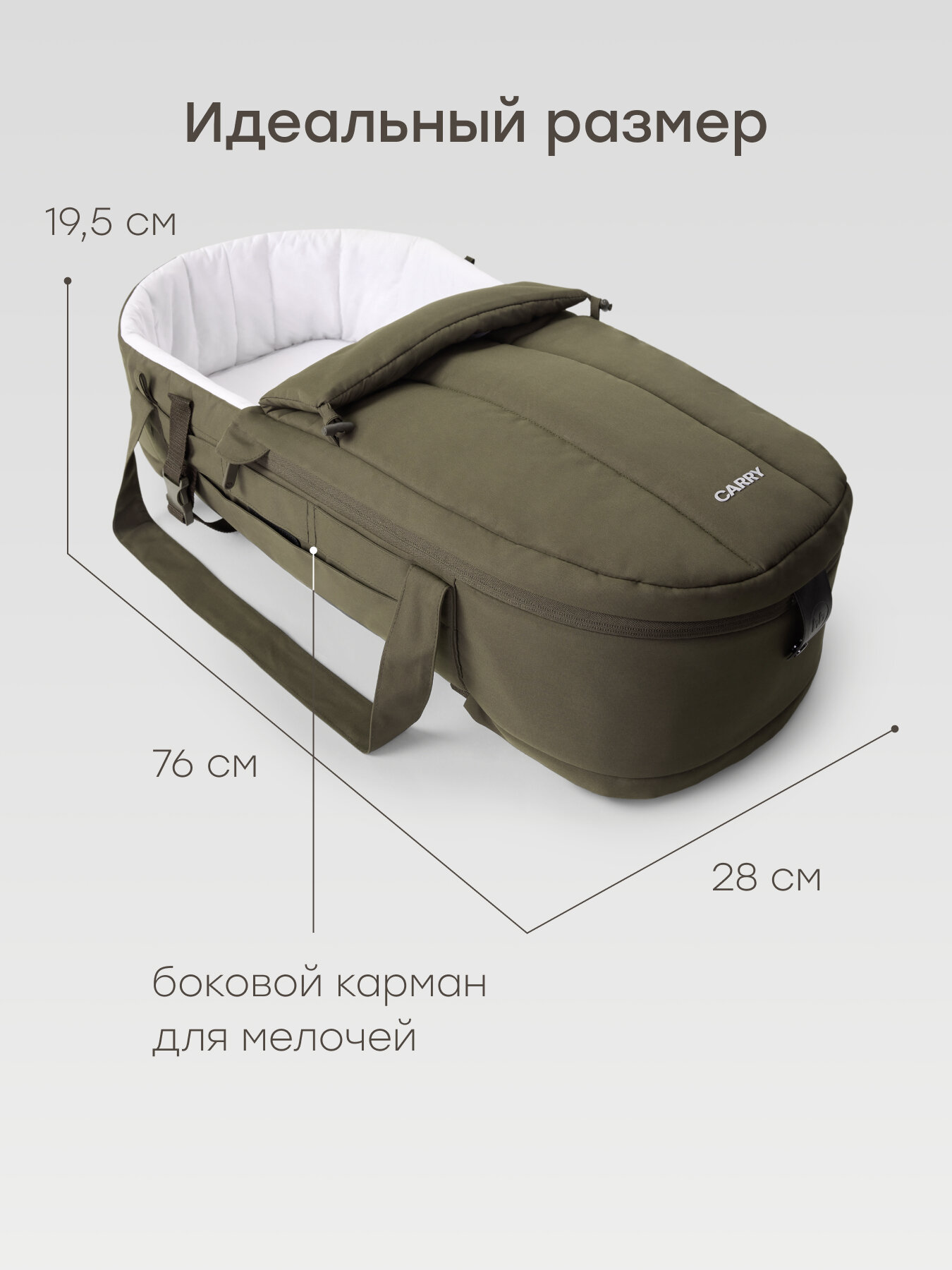 Купить 92023, Люлька-переноска для новорожденных Happy Baby CARRY, для коляски, с креплением фастекс, темно-оливковая с доставкой по всей России.