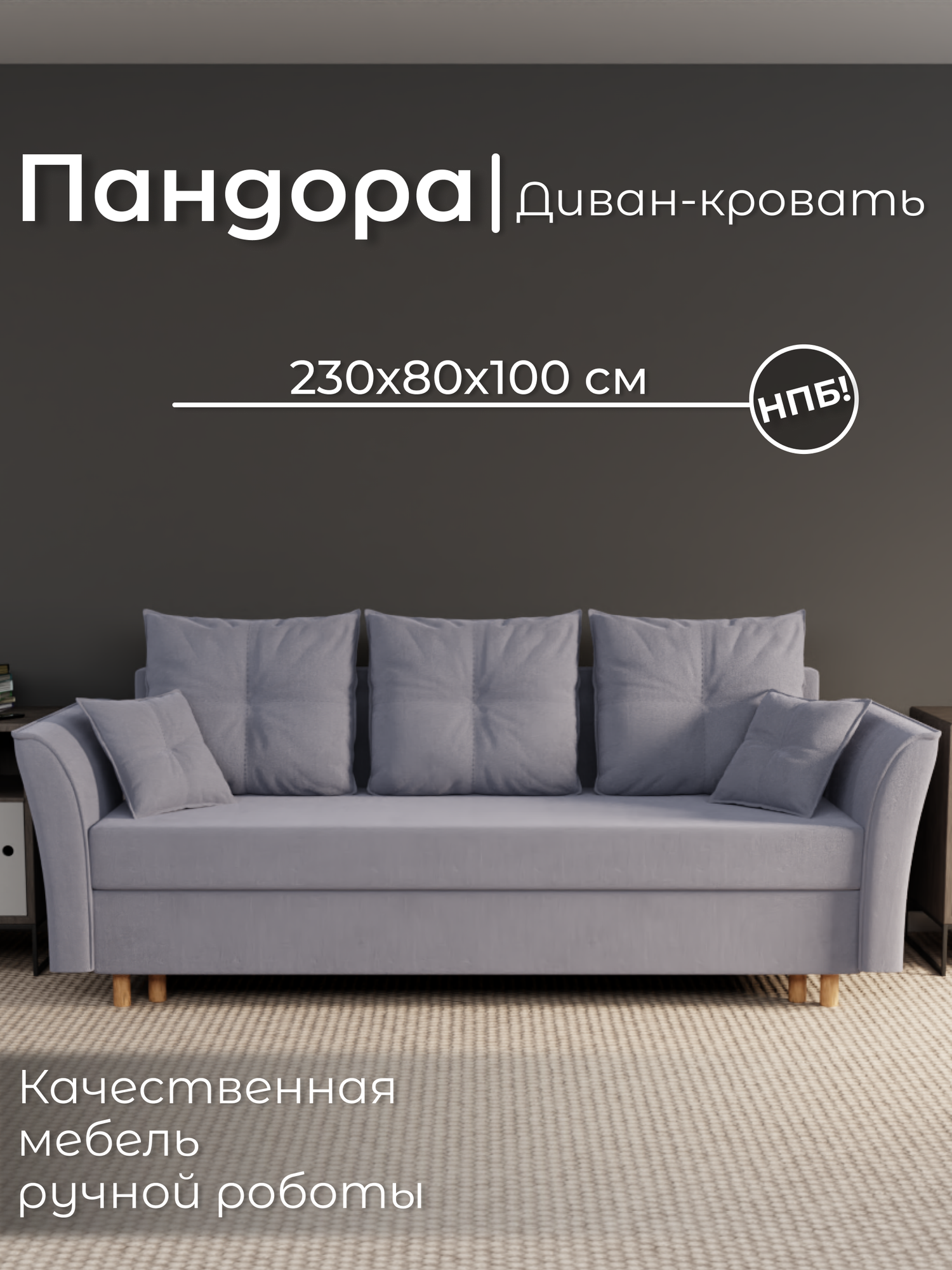 Диван, диван-кровать, диван раскладной «Пандора» НПБ, Велютта люкс 48, размеры 230х80х100, серо-синий: сравнение цен, характеристики, фото, актуальное наличие и цены.