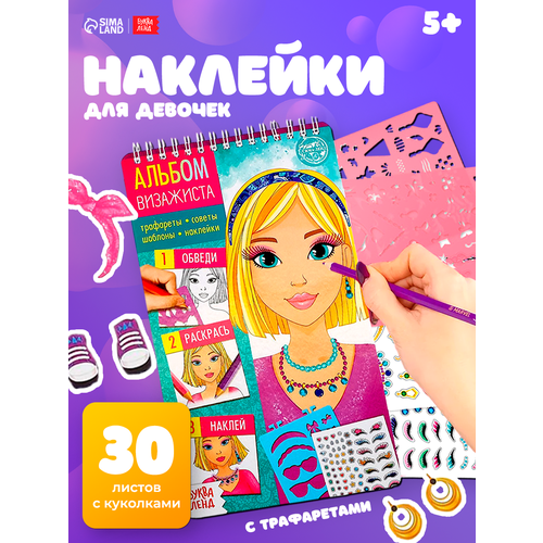 Эта книга станет помощником юному визажисту, ведь с ней малышка научится правильно подбирать мейкап для любого цвета волос и глаз. В альбоме есть 4 листа с трафаретами, 30 листов с моделями для раскрашивания, 2 листа с наклейками, а также 5 цветных листов для аппликаций.«Альбом визажиста» благотворно влияет на развитие чувства эстетического вкуса у ребёнка, также развивает его творческие способности. Рекомендовано для детей от 5 лет.