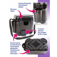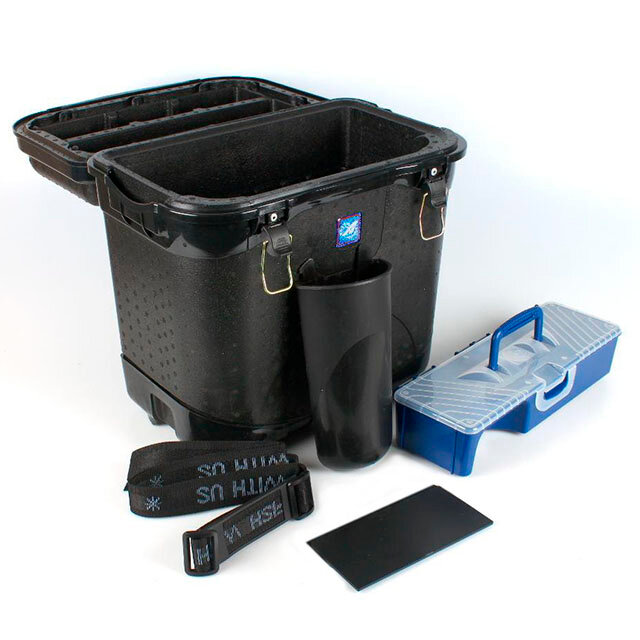Ящик рыболова A-elita в комплекте с коробкой для снастей (пенополипропиленовый с армированием). Размеры: - ширина 44 см + 5 см навесной карман; - высота 41,5 см; - глубина 27 см. Вес со всеми комплектующими - 3 кг. Ящик из вспененного полипропилена с использованием жесткого каркаса из морозостойкого пластика. Ящик оснащен пластиковым съемным карманом, а также по аналогии со спортивным - окошком для складывания рыбы, которое закрывается плотно подогнанной задвижкой. В крышке ящика есть углубление для хранения удочек и других аксессуаров, которые фиксируют съемные резиновые тяжи. В комплекте с ящиком A-Elita Sputnik Silver идет пластиковая коробка для снастей, специально разработанная для ящиков Аэлита.