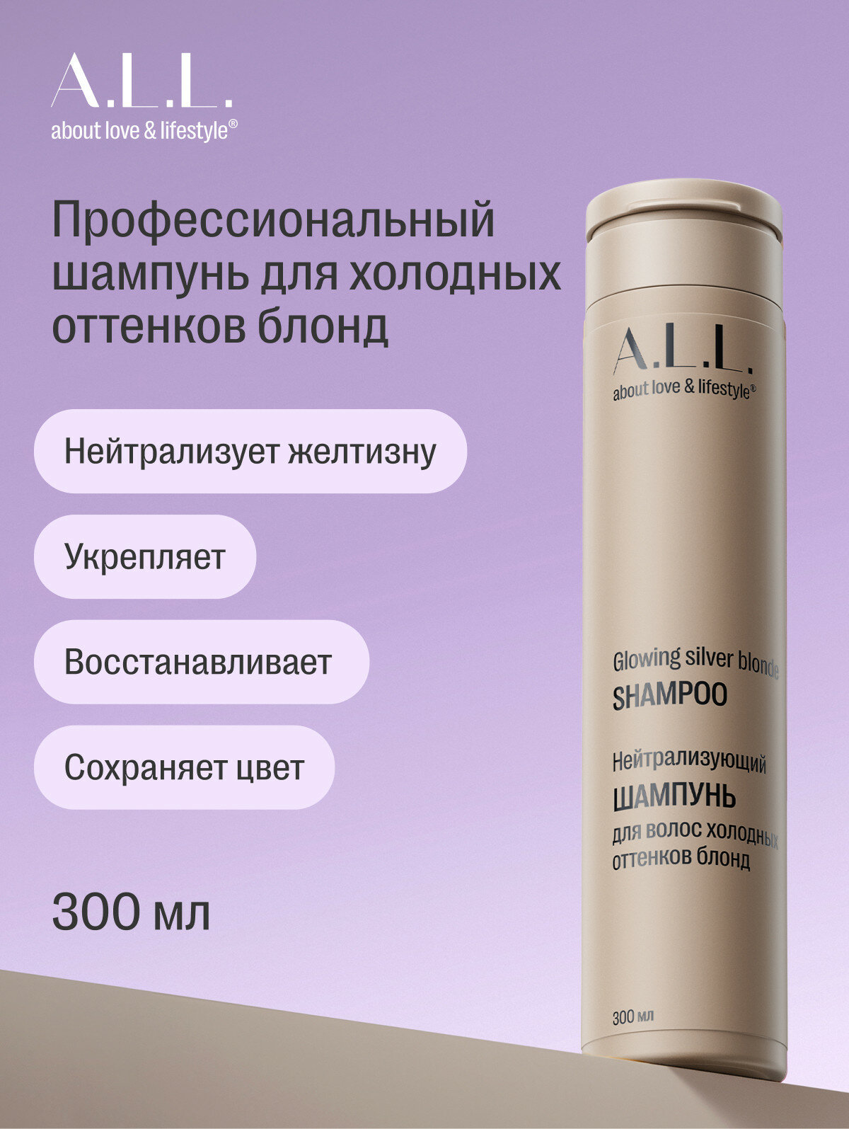 A.L.L. about love & lifestyle. Нейтрализующий шампунь для волос холодных оттенков блонд. 300 мл