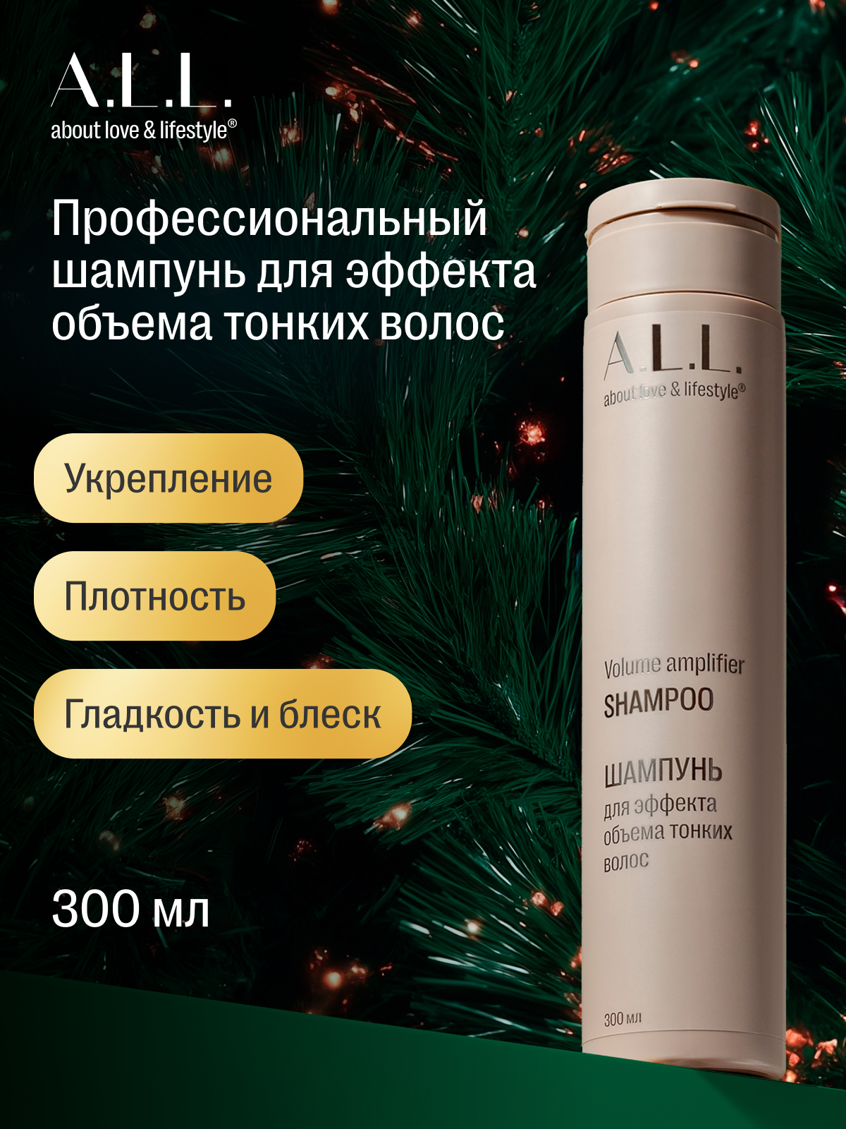 A.L.L. about love & lifestyle. Шампунь женский профессиональный для эффекта объема тонких волос. 300 мл