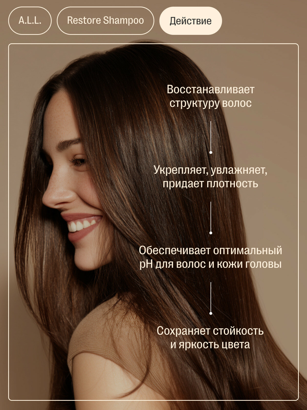 | Эффект | восстановление, защита цвета, очищение, придание блеска, придание объема, увлажнение, укрепление, уплотнение волос |