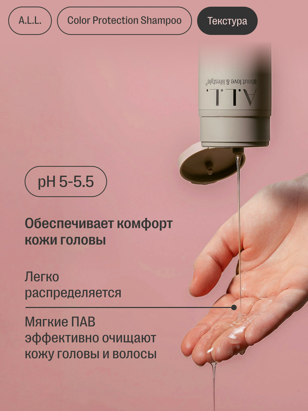 A.L.L. about love & lifestyle. Шампунь женский профессиональный для всех типов окрашенных волос. 300 мл: сравнение цен, характеристики, фото, актуальное наличие и цены.
