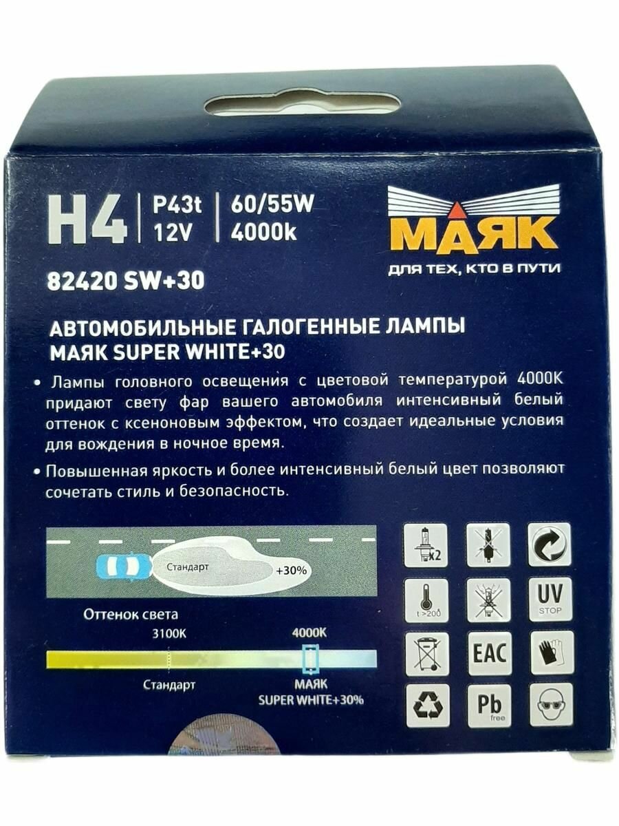 А/л Н4 12/60/55 маяк Super White +30%(к-т) 82420SW30: сравнение цен, характеристики, фото, актуальное наличие и цены.