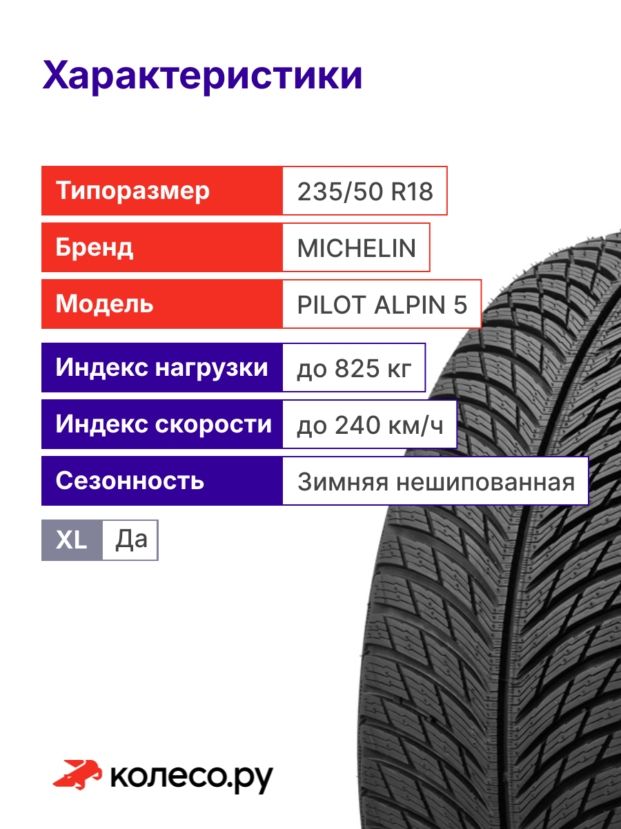 Шины зимние Michelin PILOT ALPIN 5 XL 235/50 R18 101 V Резина легковая имп: сравнение цен, характеристики, фото, актуальное наличие и цены.