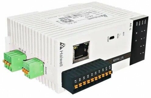 Промышленный контроллер A8 Haiwell представляет собой бюджетное устройство совмещающее в себе контроллер с WEB интерфейсом (HMI). Контроллер A8 имеет 8 встроенных дискретных входов и возможность расширения вх/вых с помощью дополнительных модулей расширения (до 15шт). Благодаря встроенным портам RS485, Ethernet и Wi-Fi осуществляется подключение с другими устройствами по промышленными протоколам: Modbus RTU/ASCII/TCP, HaiwellBus TCP, Haiwell high speed protocol, freedom protocol, MQTT. Логика управления в контроллере A8 конфигурируется через бесплатное программное обеспечение HaiwellHappy, а настройка WEB визуализации осуществляется через программное обеспечение HaiwellCloudScada. Обмен данными между ПЛК и WEB HMI производится по внутреннему протоколу HaiwellBus.