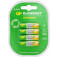 AAA Аккумуляторная батарейка GP 100AAAHC, 4 шт. 930мAч Ni-Mh, 1.2 В, циклов перезарядки - 500,