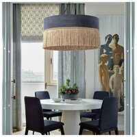 Потолочный абажур "Bohemia" от ABA Design Studio – это уникальное сочетание стиля и функциональности. Абажур изготовлен из высококачественного пластика, что обеспечивает его прочность и долговечность. Наружная часть абажура покрыта бархатом графитового цвета, что придает ему изысканный и элегантный вид. Внутренняя часть абажура выполнена в белом матовом цвете, что обеспечивает равномерное распределение света. Особое внимание заслуживает фурнитура – шелковая бахрома, которая придает абажуру неповторимый шарм и делает его еще более привлекательным.