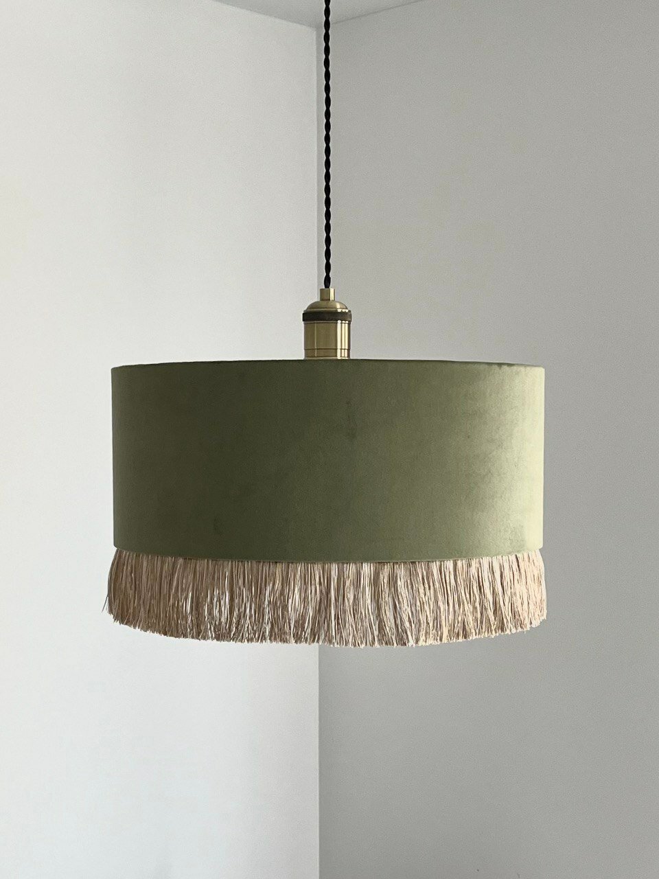 Купить Абажур бархатный с бахромой для потолочного светильника от ABA Design Studio, 45 см, зеленый с доставкой по всей России. Абажур бархатный с бахромой для потолочного светильника от ABA Design Studio, 45 см, зеленый: сравнение цен, характеристики, фото, актуальное наличие и цены.