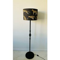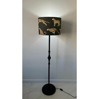 Абажур выполнен из хлопковой ткани с оригинальным анималистичным принтом, на котором изображен гепард в движении на черном фоне. Может использоваться как для торшера, так и настольной лампы.