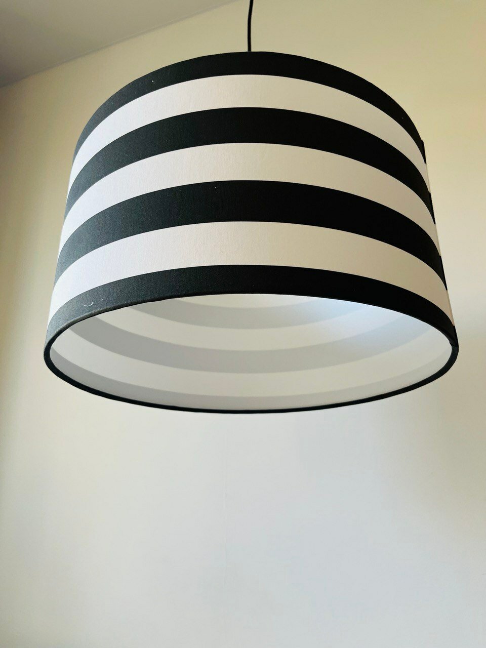 Абажур из хлопковой ткани с трендовым принтом "Черно-белая полоска".