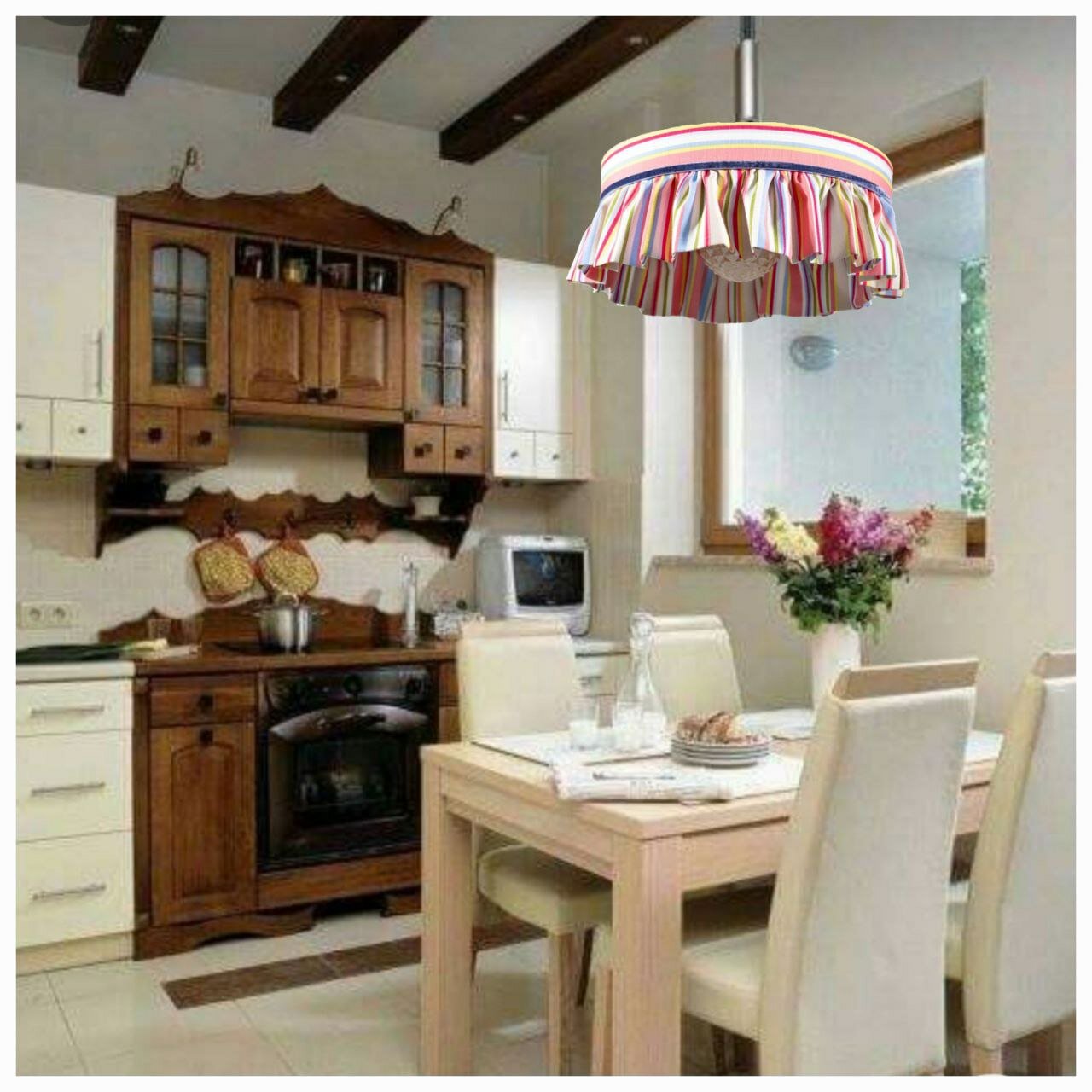 Крепление под цоколь Е27 позволяет легко установить абажур на любой светильник с соответствующим цоколем. Диаметр абажура (без учета рюш) 40 см, высота абажура (с учетом рюш) 18 см.