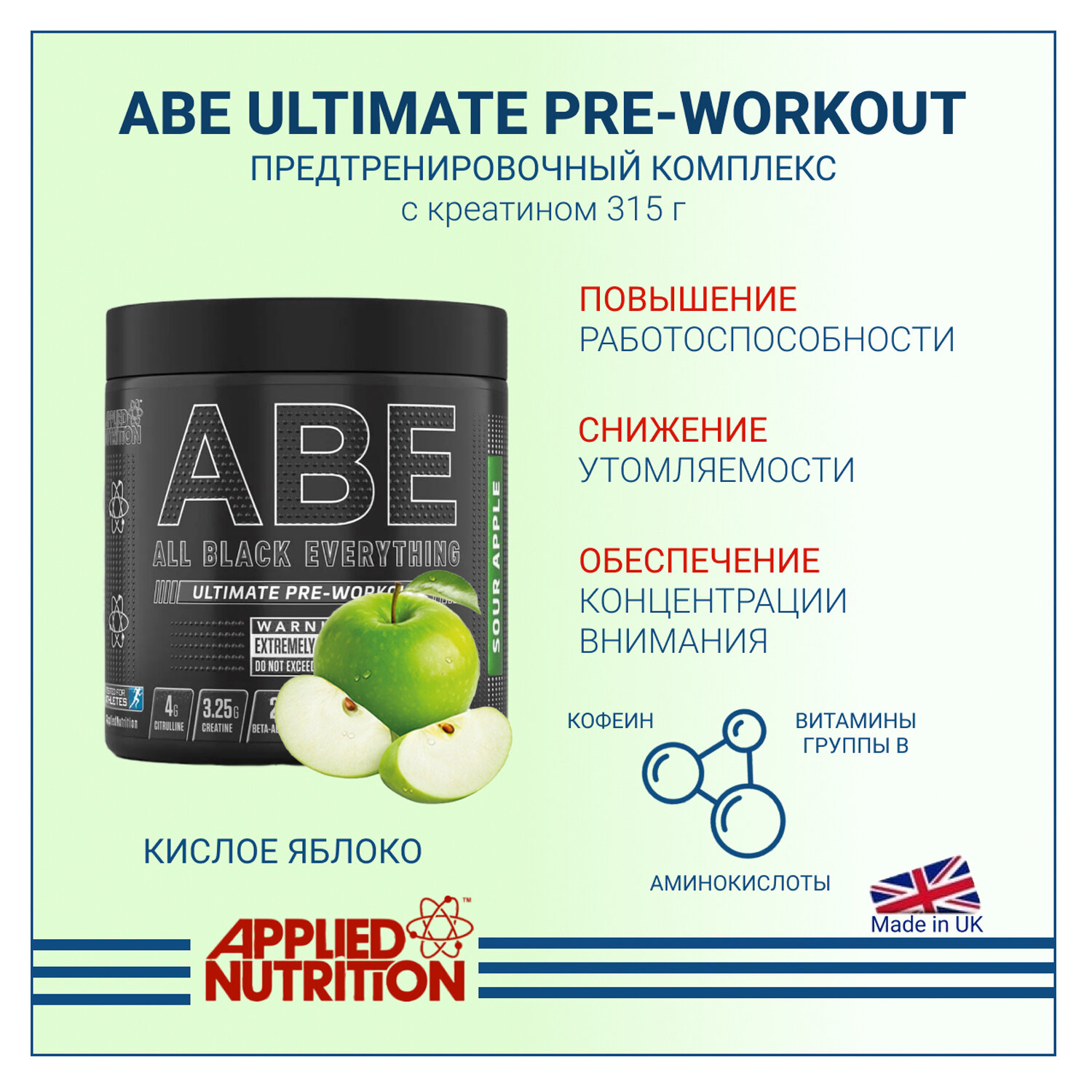 Предтренировочный комплекс Applied Nutrition ABE Ultimate PRE-WORKOUT с креатином Кислое яблоко 315 гр: сравнение цен, характеристики, фото, актуальное наличие и цены.