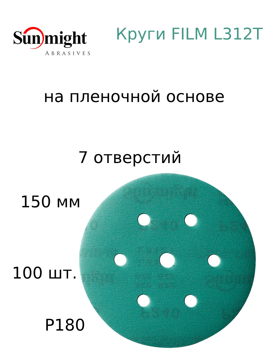 Абразивный шлифовальный круг Sunmight (Санмайт) FILM L312T, 7 отверстий, 150, P180, 100 шт.: сравнение цен, характеристики, фото, актуальное наличие и цены.