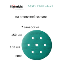 Купить Абразивный шлифовальный круг Sunmight (Санмайт) FILM L312T+, 7 отверстий, 150, P800, 100 шт. с доставкой по всей России.