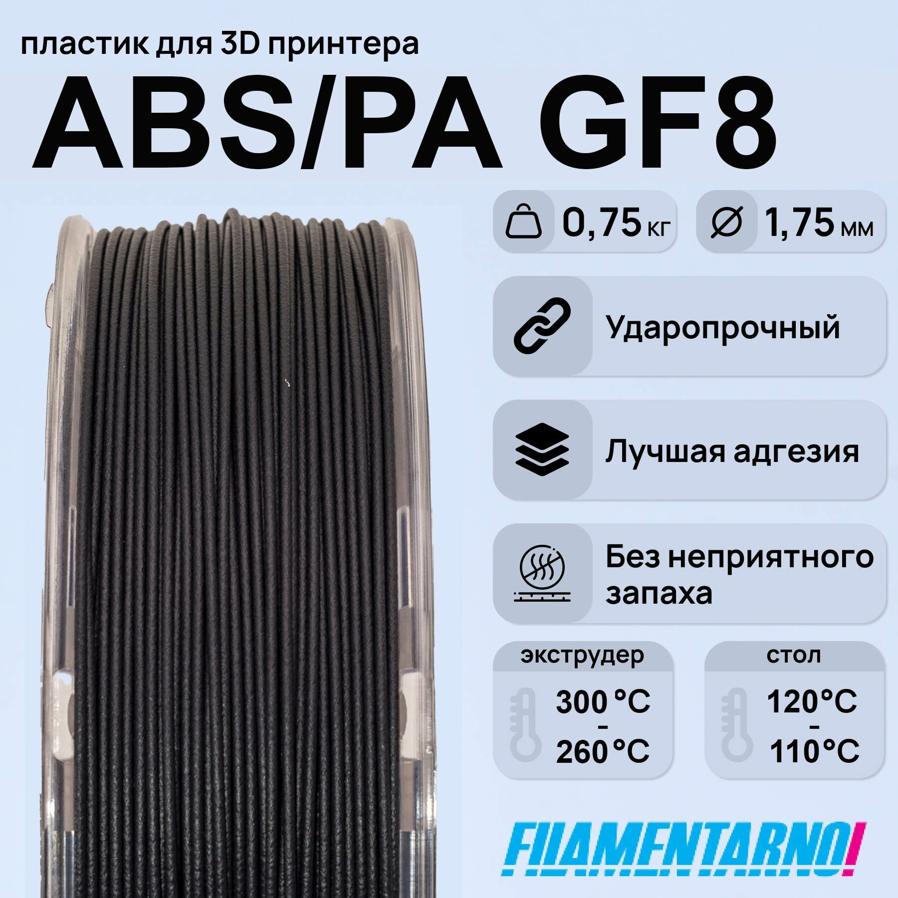 Купить ABS/PA GF-8 черный 750 г, 1,75 мм, пластик Filamentarno для 3D-принтера с доставкой по всей России. ABS/PA GF-8 черный 750 г, 1,75 мм, пластик Filamentarno для 3D-принтера: сравнение цен, характеристики, фото, актуальное наличие и цены.