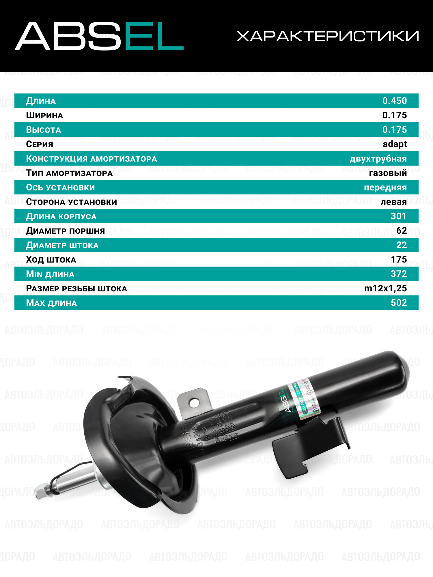 ABSEL Амортизатор подвески газовый передний левый MZ342162L для MAZDA 3 2003-2014, 5 2005-2010;: сравнение цен, характеристики, фото, актуальное наличие и цены.