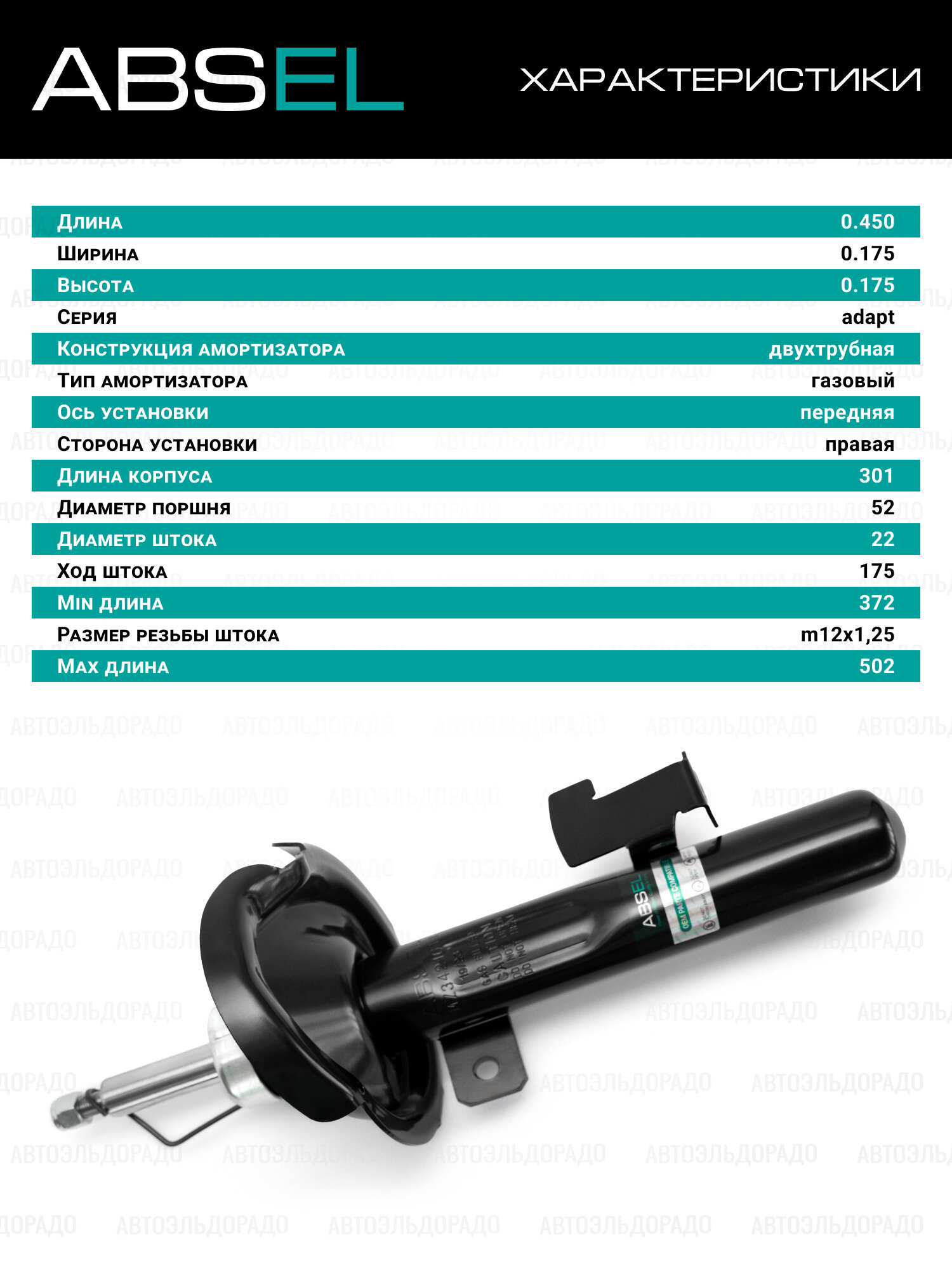 ABSEL Амортизатор подвески газовый передний правый MZ342161R для MAZDA 3 2003-2014, 5 2005-2010;: сравнение цен, характеристики, фото, актуальное наличие и цены.