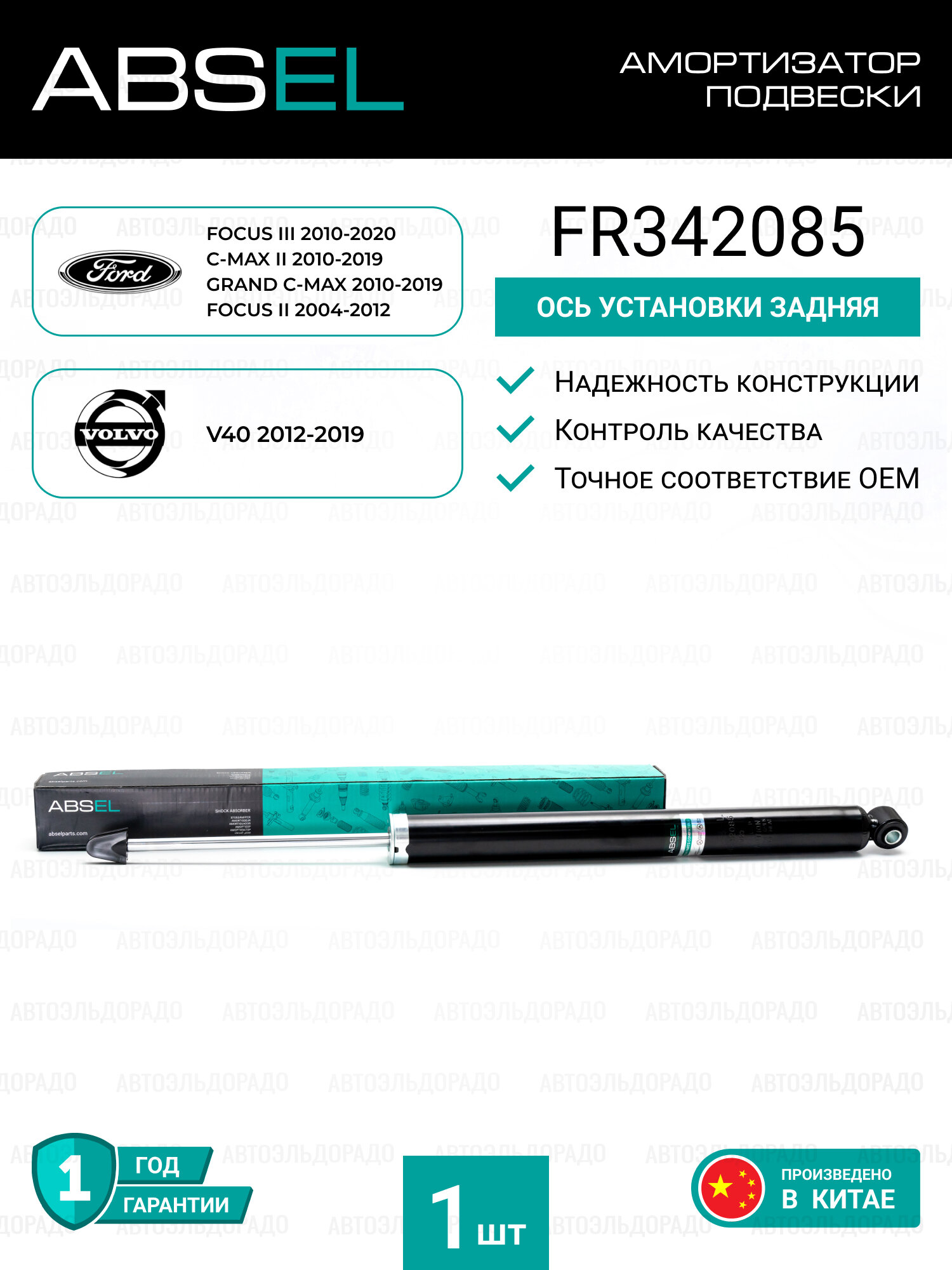 ABSEL Амортизатор подвески газовый задний FR342085 для FORD FOCUS III 2010-2020, C-MAX II 2010-2019, GRAND C-MAX 2010-2019, FOCUS C-MAX 2003-2007; VOLVO V40 2012-2019: сравнение цен, характеристики, фото, актуальное наличие и цены.