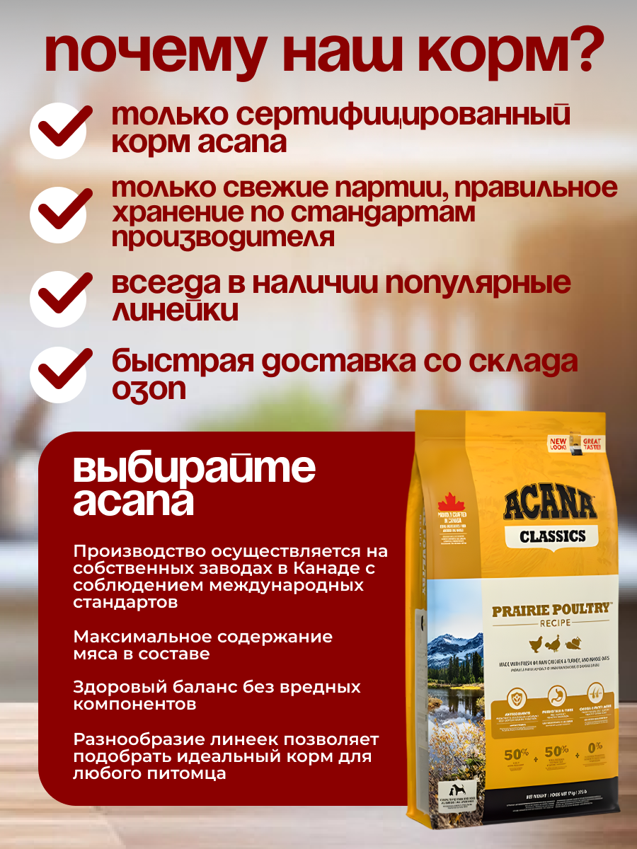 Купить ACANA Classics Prairie Poultry (Курица), 2 кг с доставкой по всей России.
