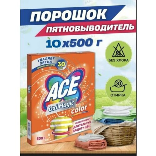 ACE Oxi Magic Color усилитель стирального порошка. Пятновыводитель разработан для удаления пятен с цветного белья. Его формула на основе активного кислорода, не содержит хлора, а значит, бережно относится к ткани и не повреждает цвет, не вымывает его из ткани. Способен справляться со сложными пятнами даже при температуре 30 градусов и длительную защиту цвета уже после первой стирки. Пятновыводитель с активным кислородом удаляет пятна за 30 секунд благодаря формуле Oxi Magic.