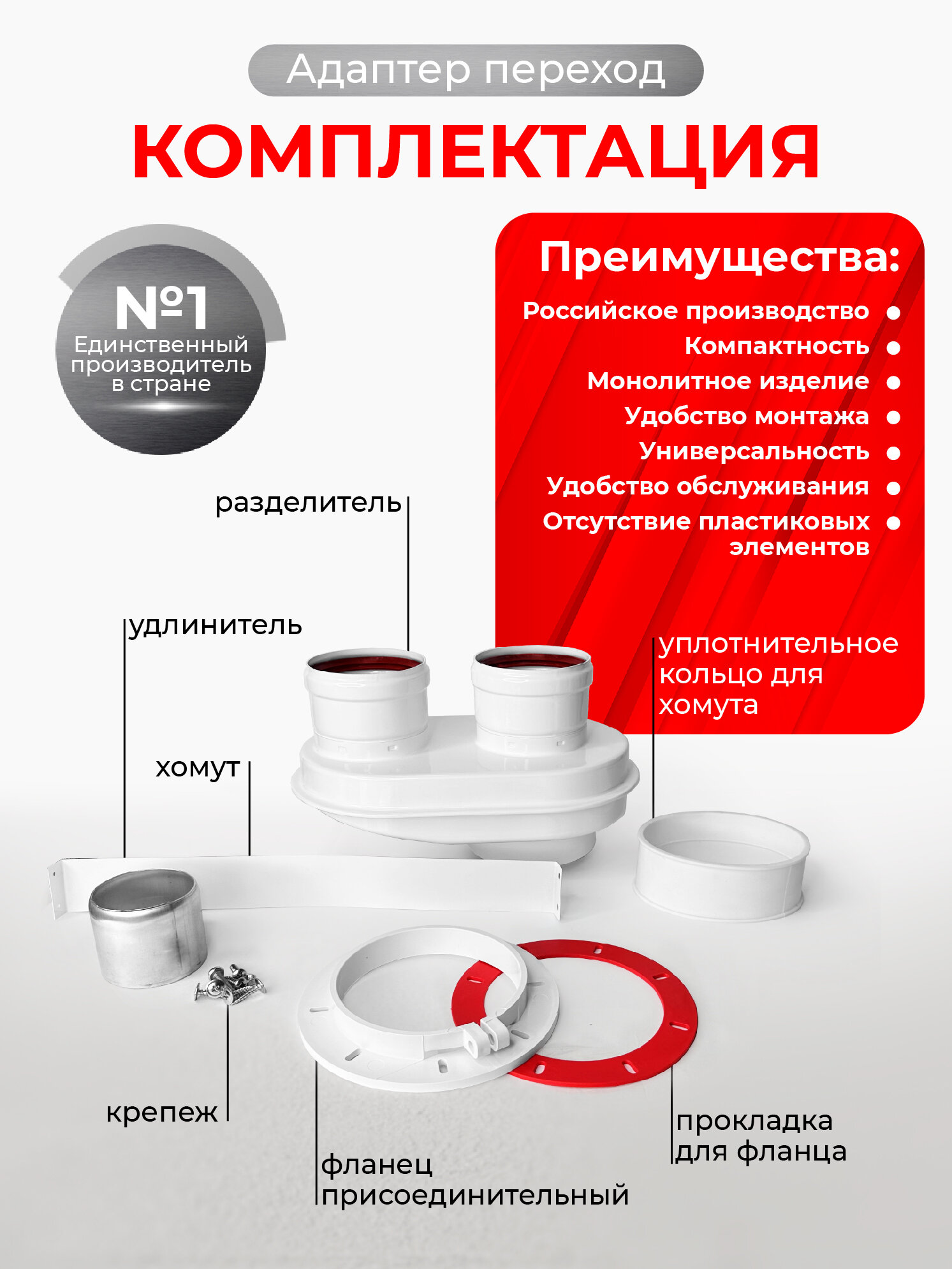 Адаптер моноблочный универсальный, переходник с коаксиального дымохода 60/100 мм на двухтрубную систему 80/80 «Прок»: сравнение цен, характеристики, фото, актуальное наличие и цены.