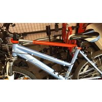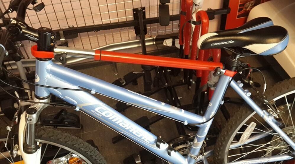 Велосипедный адаптер, предназначенный для транспортировки велосипедов с нестандартными рамами (дамские велосипеды, детские, BMX, велосипеды для велотриала или скоростного спуска и др.). Благодаря телескопической штанге, совместим с велосипедными рамами любых размеров. Крепиться за подседельный штырь и втулку руля, имитируя между ними верхнюю трубу рамы велосипеда, за которую происходит крепление и удержание велосипеда в велокреплении или на кронштейне для хранения. Подходит для велокреплений на фаркоп, на заднюю дверь автомобиля, а также для гаражного хранения в подвешенном состоянии за раму велосипеда. Характеристики: - диапазон фиксации между точками крепления (рабочая длина): от 45 см до 75 см; - допустимый диаметр охвата рамы: от 20 мм до 35 мм; - возможность перевозки велосипедов с карбоновыми рамами: сведения отсутствуют; - грузоподъемность: - ; - размеры в сложенном состоянии, ДхШхВ: 50х4х4 см; - размер в установленном состоянии, ДхШхВ: 80х4х4 см; - вес: 2 кг; - цвет: красный.