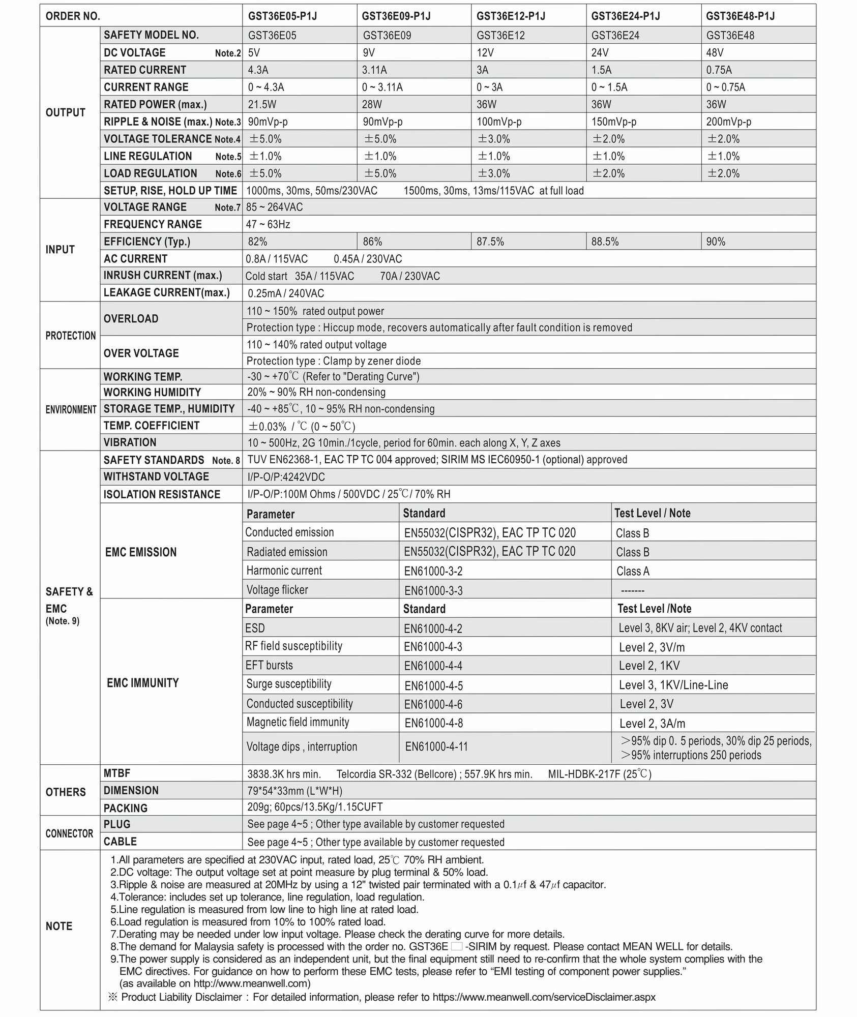 Адаптер питания универсальный 12В 3А MEAN WELL GST36E12-P1J в розетку 36Вт длина кабеля 1 метр, разъем DC: сравнение цен, характеристики, фото, актуальное наличие и цены.