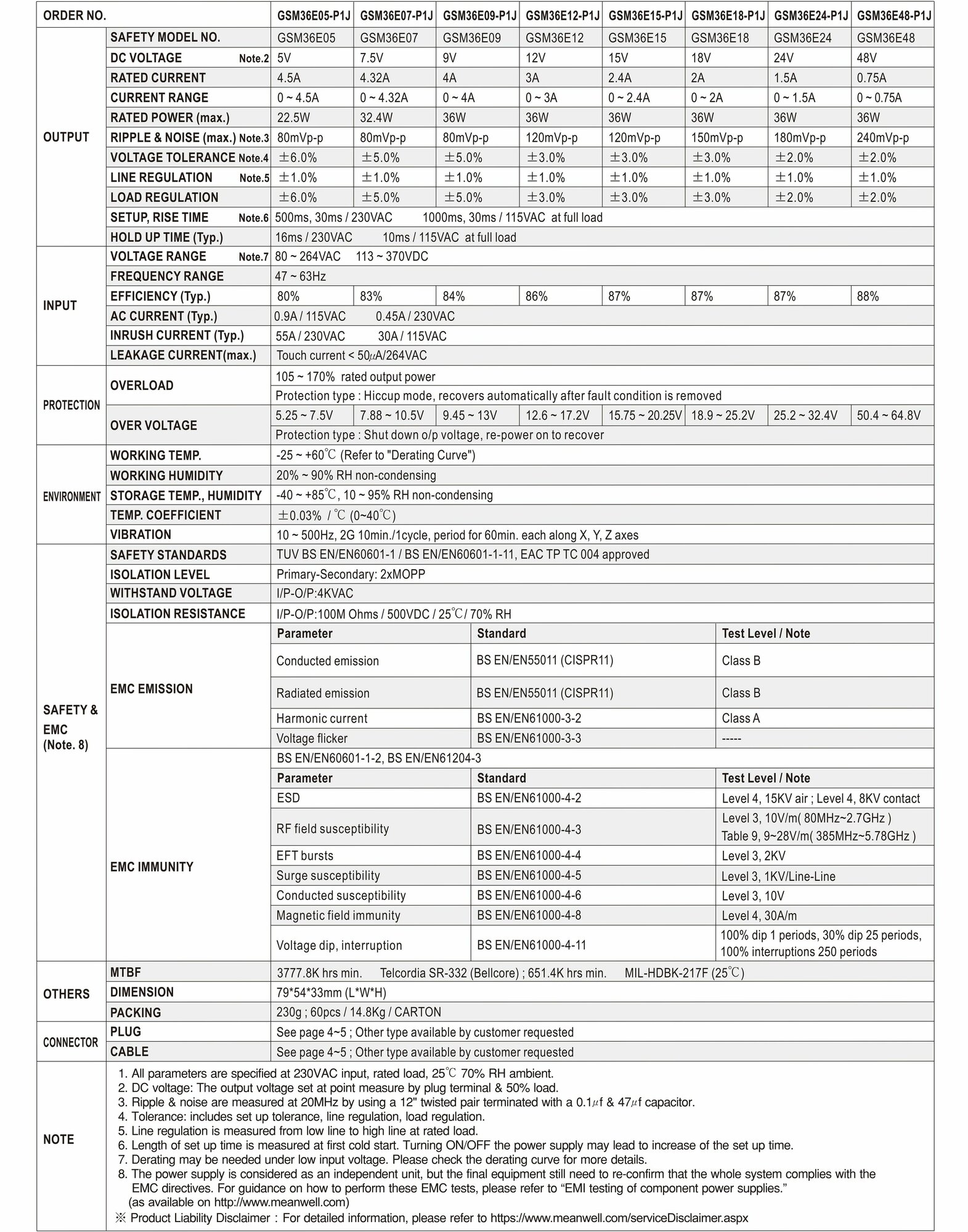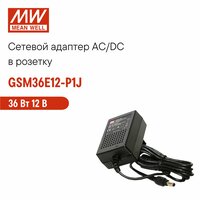 Адаптер питания в розетку 12В 3А MEAN WELL GSM36E12-P1J, 36Вт, разъем DC, для портативных медицинских устройств, 1,8 м: сравнение цен, характеристики, фото, актуальное наличие и цены.